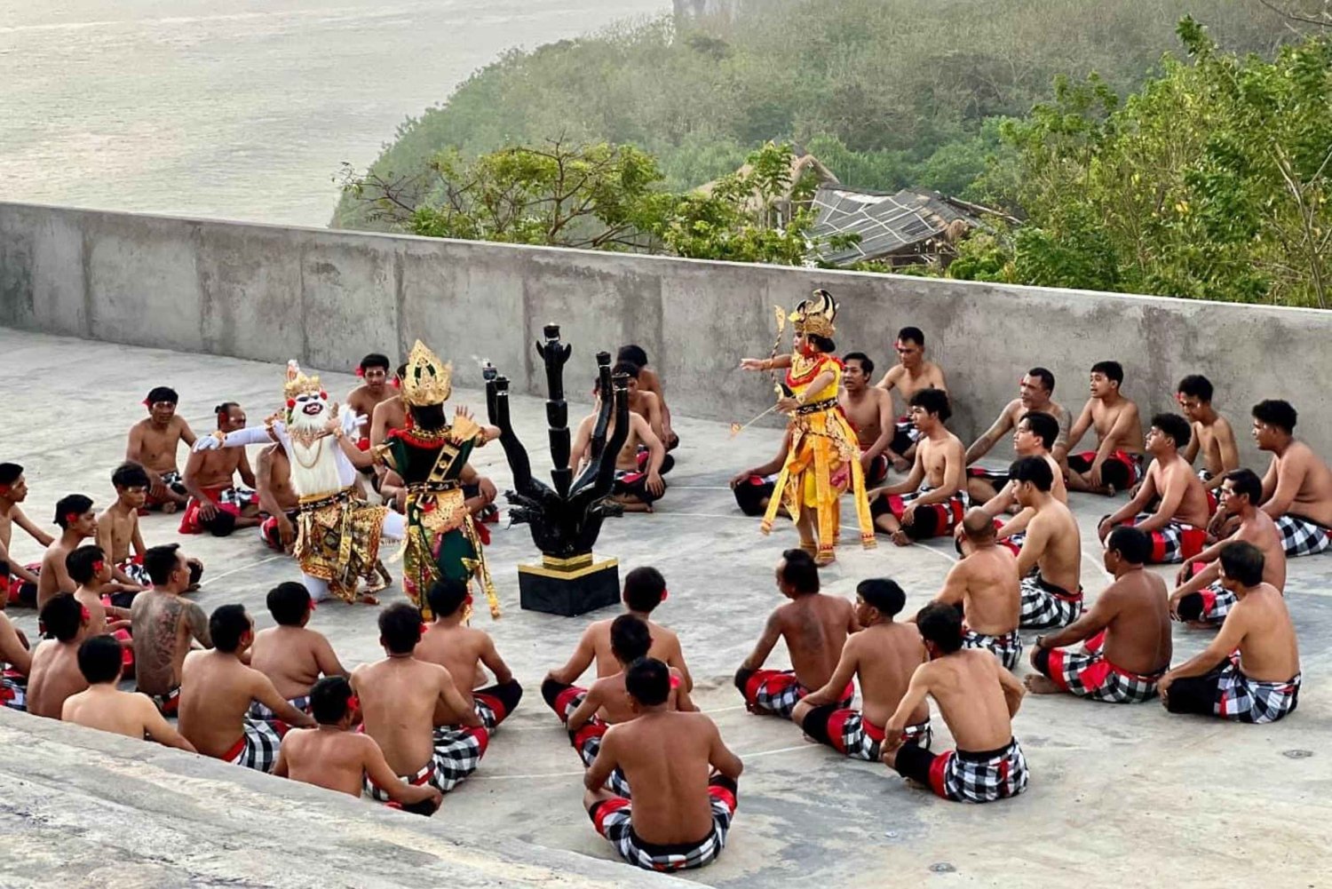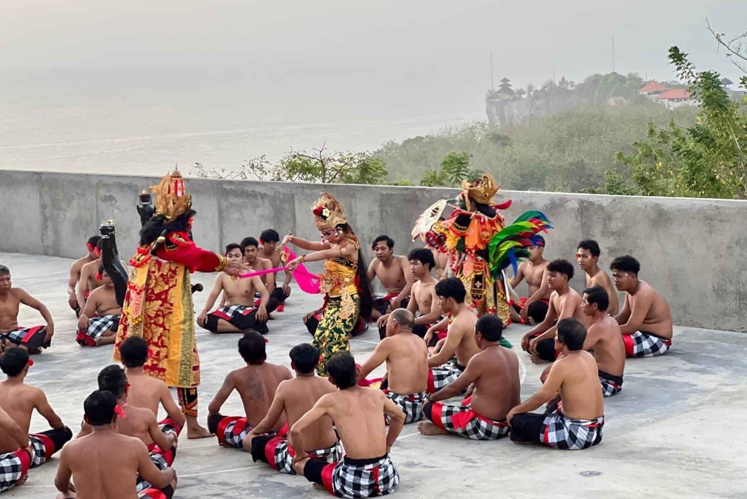 - O espetáculo de dança não é no Templo de Uluwatu; o local fica a apenas 1 km do Templo de Uluwatu, oferecendo vistas deslumbrantes sem longas filas. Os ingressos dão acesso apenas ao Uluwatu Cliff Sunset Point; é necessário um ingresso separado para assistir à Dança do Fogo Kecak. Da mesma forma, os ingressos para a Dança Kecak exigem um ingresso para aceder ao local.