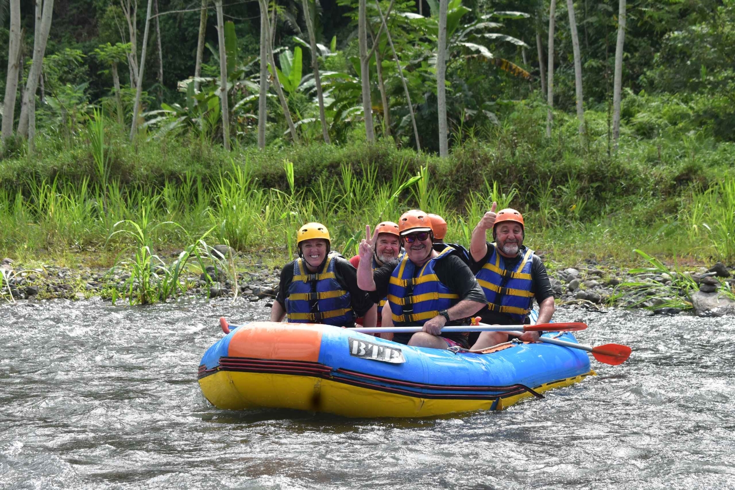 Beneficia de um serviço de busca no hotel e depois viaja até ao rio Telaga Waja para receber uma breve explicação sobre rafting à chegada. Alterna entre os rápidos de classe I e II numa viagem de 2 horas através dos vales profundos com cascatas e penhascos pré-históricos. Maravilha-te com a floresta tropical e encontra santuários hindus, brilhantemente decorados nos dias de oração cerimonial. Depois, desfruta de um almoço buffet indonésio, preparado por um chef, na natureza selvagem, antes de regressares ao teu hotel.Includes