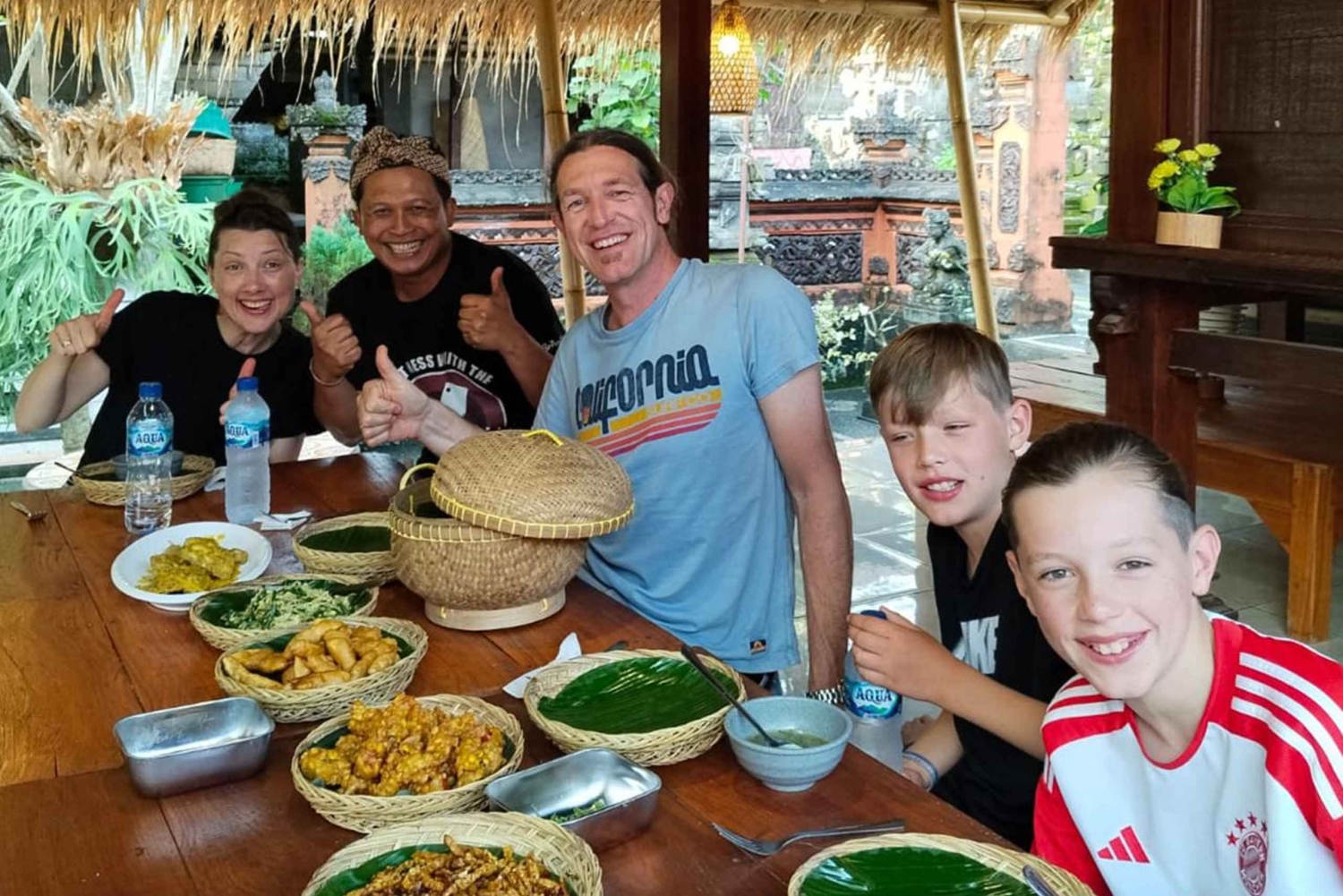 Entre em uma casa balinesa tradicional Para entender de verdade o estilo de vida local, você visitará uma casa balinesa tradicional. Ao contrário das casas modernas, uma casa balinesa é um complexo harmonioso, não um único edifício. Você vai caminhar pelas distintas estruturas que compõem um complexo familiar, incluindo o Angkul-angkul (portão), Aling-aling (muro de barreira) e vários pavilhões como o Bale Dauh, Bale Daje e Bale Dangin.