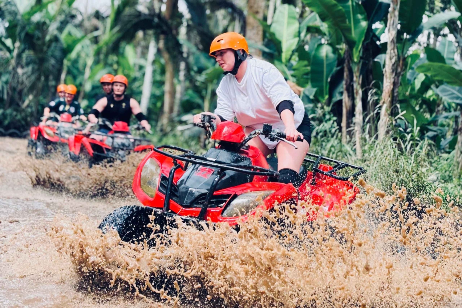 Prepare-se para um dia inesquecível no coração de Bali com a nossa aventura combinada em Ubud! Esta viagem de dia inteiro combina adrenalina, cultura e beleza natural — perfeita para quem quer experimentar o melhor de Ubud num pacote incrível. Comece o seu dia com um emocionante passeio de quadriciclo pelas selvas exuberantes de Ubud, trilhas lamacentas, aldeias tradicionais, campos de arroz e túneis de gorilas. Seja você um iniciante ou um piloto experiente, nossos potentes veículos todo-o-terreno (ATVs) são fáceis de manusear e nossos guias especializados garantirão que você tenha uma aventura segura e emocionante. Sinta a adrenalina ao passar pela lama, navegar por inclinações íngremes e explorar florestas secretas de bambu. Depois de se limpar e reabastecer, seguiremos para o Templo Tirta Empul, um dos locais mais sagrados e espiritualmente importantes de Bali. Conhecido pelas suas águas sagradas, Tirta Empul oferece a oportunidade de testemunhar (ou até participar) num ritual tradicional de purificação da água que se acredita limpar a alma e trazer boa sorte. A bela arquitetura balinesa do templo, a atmosfera serena e a rica história que remonta a mais de mil anos fazem dele um tesouro cultural imperdível. A viagem continua com uma visita à Cachoeira Tibumana, uma joia escondida nas exuberantes selvas de Bangli. Esta cachoeira deslumbrante e pitoresca é cercada por vegetação tropical, criando o local perfeito para relaxar, nadar ou simplesmente apreciar a tranquilidade do ambiente. É menos movimentada do que outras cachoeiras em Bali, oferecendo uma experiência mais íntima e mágica.Includes