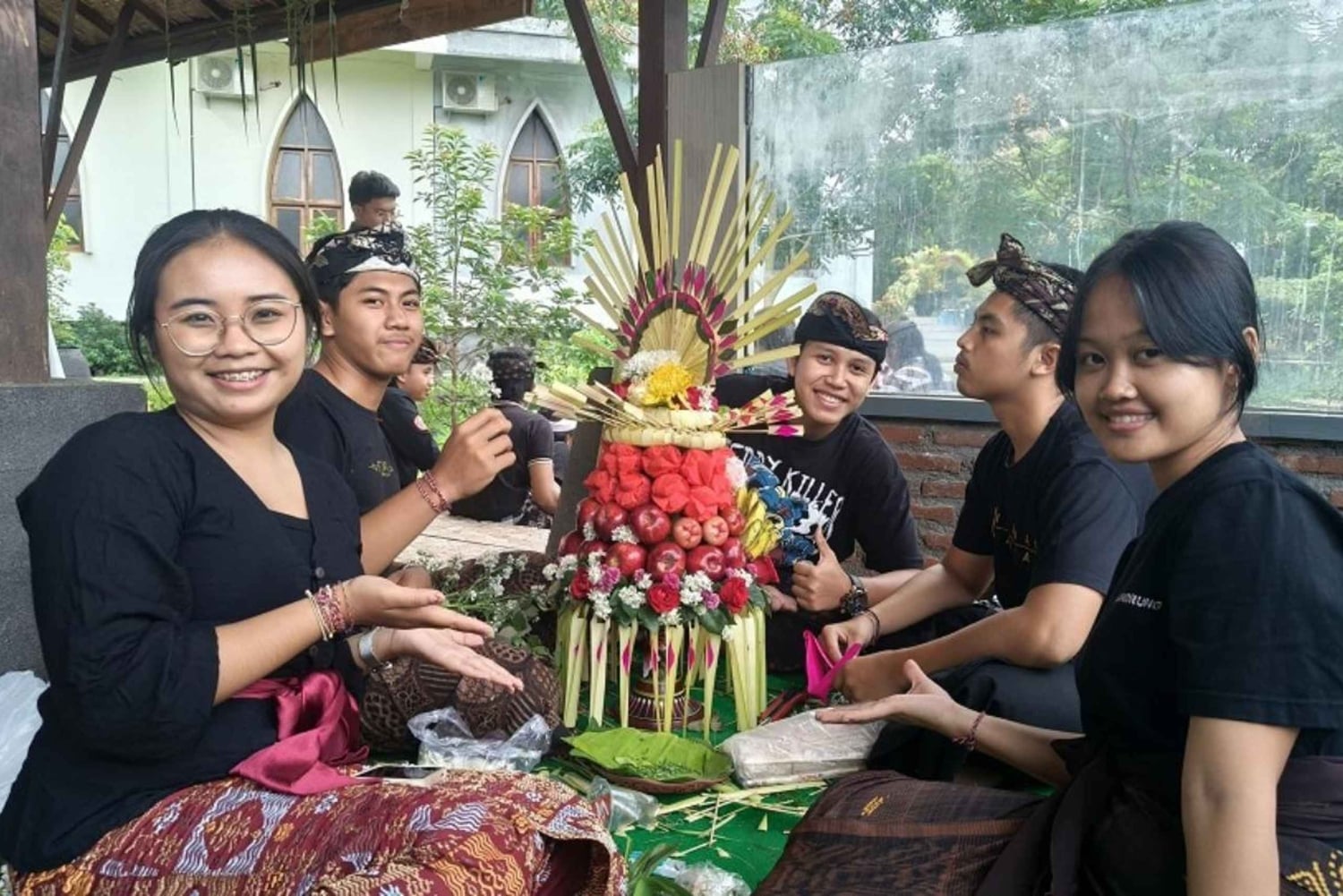 Гебоган — это высокое и красочное фруктовое подношение, которое обычно преподносят во время храмовых церемоний и особых религиозных мероприятий как символ благодарности, процветания и преданности богам. В этом практическом семинаре вас будут сопровождать дружелюбные и знающие местные балийские гиды, которые объяснят культурное значение, философию и символику подношений гебогана. Используя разнообразные свежие фрукты, цветы и традиционные материалы, вы шаг за шагом научитесь оформлять, балансировать и украшать гебоган в аутентичном балийском стиле. Мастер-класс подходит для новичков, предварительный опыт не требуется. Все материалы и инструменты предоставляются, а местный экскурсовод будет помогать вам на протяжении всего процесса, чтобы обучение было увлекательным и комфортным. Создавая гебоган, вы глубже познаете балийскую индуистскую культуру, повседневные ритуалы и церемониальные традиции. По завершении мастер-класса по изготовлению балийских подносов с фруктами вы получите собственный красиво оформленный гебоган и незабываемый культурный опыт. Это мероприятие идеально подходит для путешественников, семей, любителей культуры и групп, которые хотят глубже познакомиться с балийскими традициями и насладиться аутентичным местным досугом на Бали.Includes