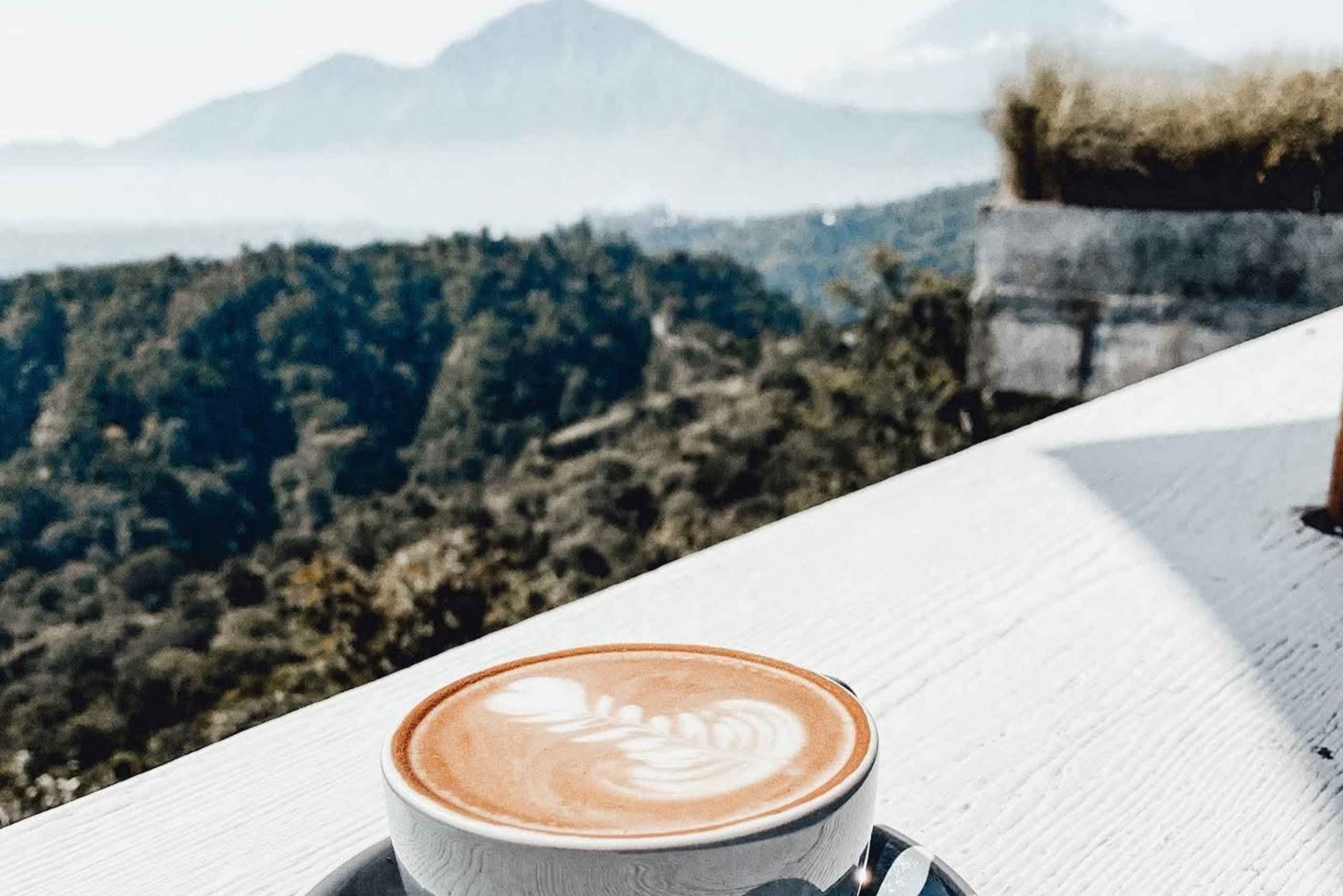 Забудьте о заботах и насладитесь безмятежной красотой рассвета в уютном кафе Aesthetic Cafe в Кинтамани. Эта скрытая жемчужина, расположенная в потрясающей кальдере, открывает свои двери рано утром или днем. Экскурсия может быть частной или Оставьте свои заботы позади и отправьтесь в тур по Кинтамани, достойный Instagram, посетив кафе Kintamani, плавучий храм на озере Батур и отправившись в популярный джип-тур на открытом воздухе к черному лавовому озеру. Насладитесь любимым утренним напитком и вкусным завтраком или обедом, пока небо превращается в яркий холст. Почувствуйте, как нежный ветерок ласкает вашу кожу, когда первые лучи солнца проникают в горизонт, освещая спокойную обстановку золотым сиянием. Независимо от того, являетесь ли вы любителем природы, фотографом-энтузиастом или просто ищете спокойное начало дня, наблюдение за восходом солнца в Aesthetic Cafe Kintamani обещает спокойный и незабываемый опыт.Includes