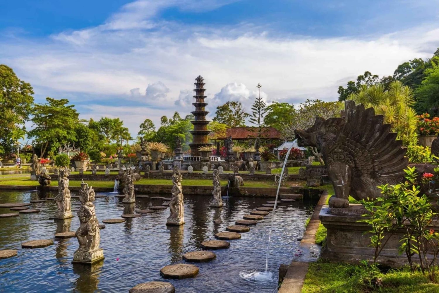 Начните свой день с удобного трансфера из отеля или любого места в Денпасаре. Отправьтесь в храм Лемпуянг, где вас встретит потрясающий вид на вулкан. Запечатлейте момент с помощью фотосессии в развевающемся платье на фоне невероятных пейзажей в Леренг-Агунг. Затем посетите водный дворцовый комплекс Тиртаганга, известный своими прекрасными садами и фонтанами. Во время поездки вы сможете полюбоваться живописными рисовыми террасами, которые выстилают маршрут, предлагая возможность взглянуть на традиционный образ жизни на Бали. Остановитесь на обед в местном ресторане с панорамным видом, где вы сможете расслабиться и насладиться красотой восточной части Бали. В течение дня ваш гид будет рядом, чтобы сделать фотографии и видео, гарантируя вам незабываемые воспоминания о поездке. Экскурсия гибкая, что позволяет посетить столько мест, сколько вы сможете за день, или не торопиться и двигаться в удобном для вас темпе. Ваш гид Bali Bestie может порекомендовать другие места и адаптировать поездку к вашим личным запросам. Сообщите своему лучшему другу на Бали о любых личных предпочтениях и о том, что вы ищете. В стоимость входит кондиционер в автомобиле, бутылка с водой и услуги англоговорящего гида, который будет делать фотографии и видео на протяжении всей экскурсии, включая короткий видеомонтаж с главными моментами. Тур подходит для одиночных путешественников, пар, небольших или больших групп. **В стоимость не входят входные билеты и обед/ужин. Обычно входные билеты могут стоить от 50 000 до 150 000 рупий за посещение**Includes