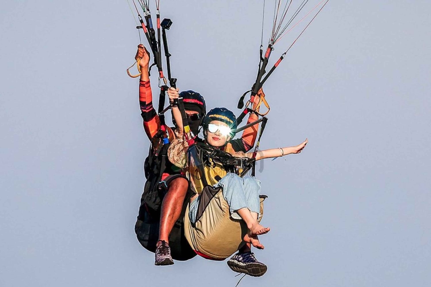 Тандемный полет на параплане с сертифицированным пилотом. Снаряжение для безопасности (подвесная система, шлем и другое оборудование). Предполетный инструктаж по технике безопасности и инструкции. Бесплатная вода в бутылках. Страховое покрытие для данного вида деятельности. Пакет видео- и фотосъемки. Трансфер из отеля.Easy cancellation