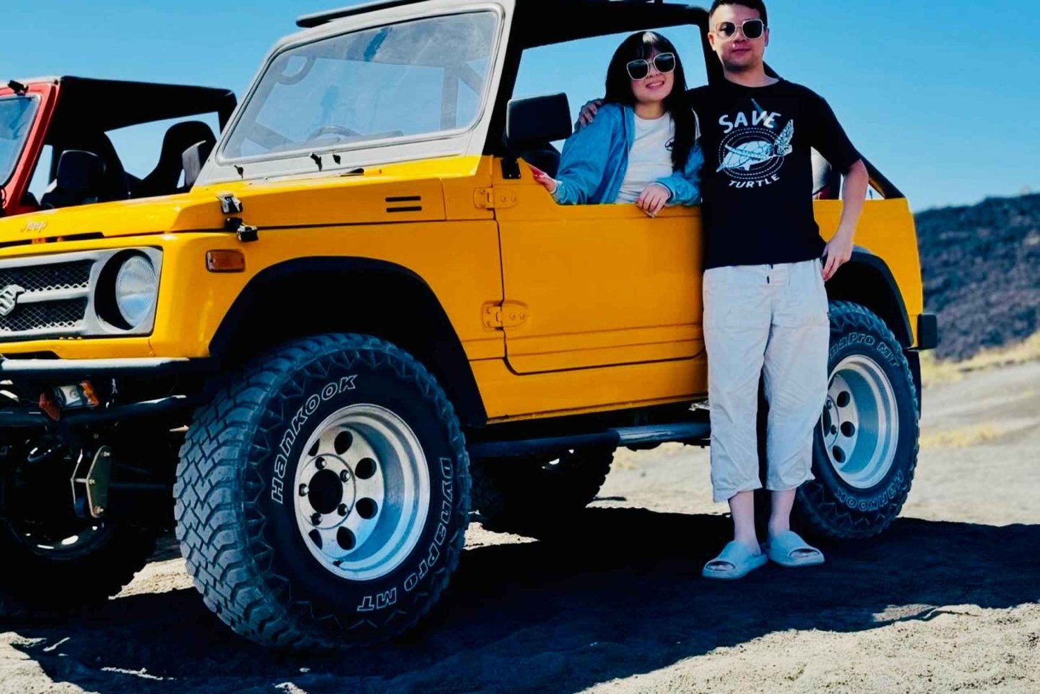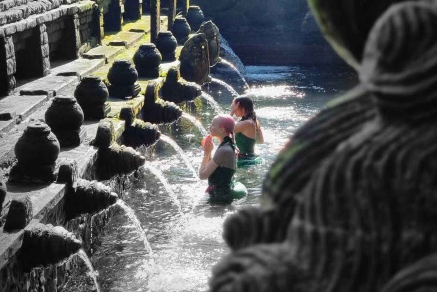 Börja dagen med en spännande jeep-tur på Mount Batur och upptäck de fantastiska svarta lavafälten på Gunung Batur på ett spännande offroad-äventyr med fyrhjulsdriven jeep. Längs vägen kan du njuta av fantastisk utsikt över den aktiva vulkanen, utforska unika vulkaniska landskap formade av tidigare utbrott och ta massor av oförglömliga bilder. Detta jeepäventyr på Bali är det perfekta sättet att uppleva Balis naturliga underverk bortom de vanliga vandringslederna. Fortsätt din resa med ett uppfriskande besök till Tegenungan-vattenfallet i Ubud, en av Balis dolda pärlor omgiven av frodig tropisk djungel. Här kan du beundra den kraftfulla kaskaden, ta fantastiska bilder och koppla av i naturen. Det är det perfekta sättet att avsluta en dag med äventyrsturer på Bali, som kombinerar off-road jeep-spänning, naturskönhet och balinesisk kultur i en oförglömlig upplevelse.Includes