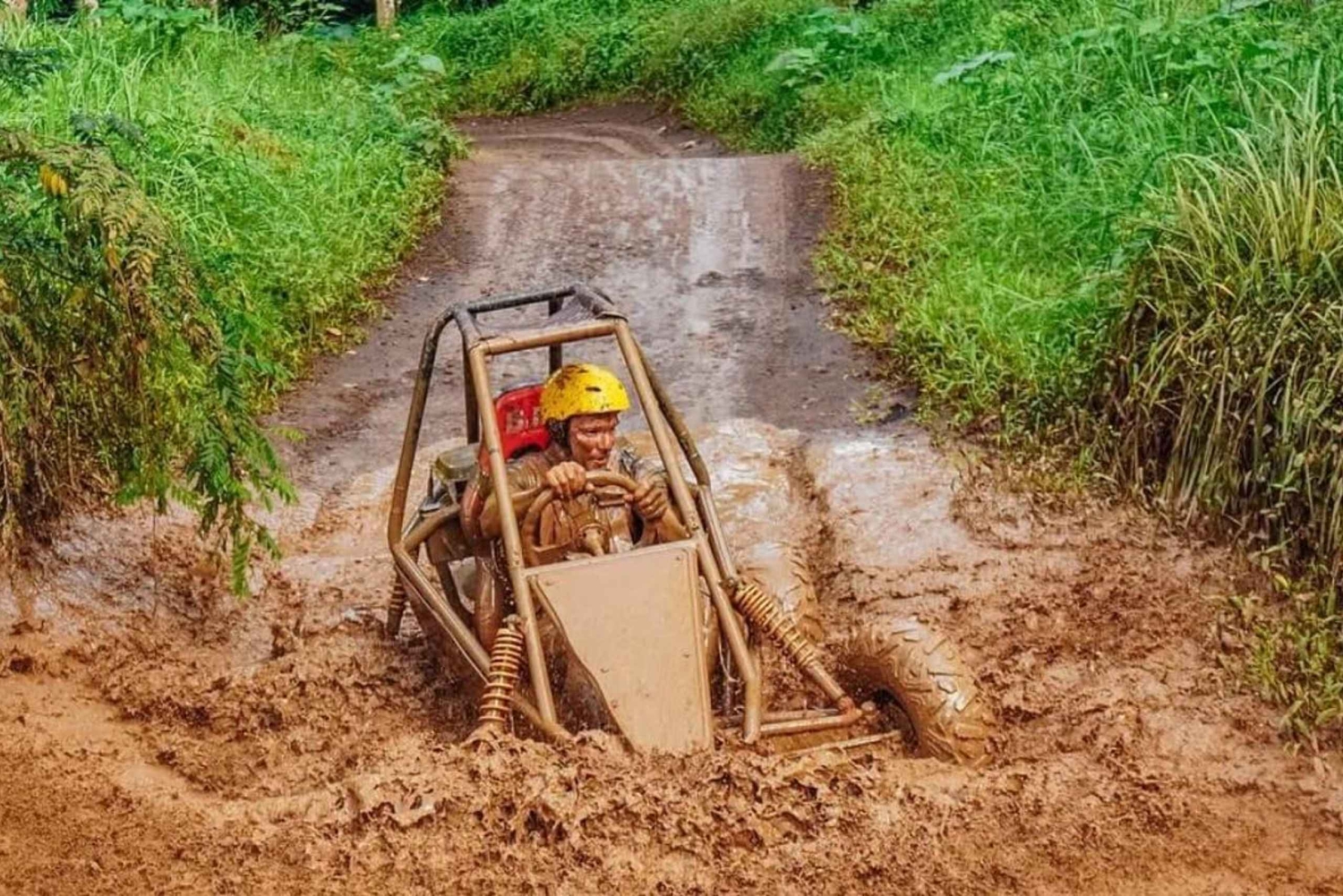 Börja dagen med en häftig djungelbuggytur genom Bali Pertiwis frodiga stigar. Ta kontroll över din egen fyrhjuliga buggy och kör genom natursköna djungelstigar, leriga spår och risfält. Kursen är utformad för både nybörjare och erfarna förare, vilket garanterar säkerhet och spänning för alla. Njut av spänningen av att plaska genom vattenpölar, klättra uppför kullar och manövrera genom naturliga hinder när du utforskar Ubuds dolda skönhet. Varje buggy är väl underhållen och utrustad med säkerhetsutrustning för en bekväm och säker resa. Efter ditt buggyäventyr är det dags för en actionfylld paintball-match i Bali Pertiwis naturliga arena. Utrustad med säkerhetsutrustning och paintballpistoler, dyk ner i en spännande strid omgiven av djungel och öppna fält. Spela i lag och testa din strategi, ditt lagarbete och din precision när du siktar på att fånga motståndarens flagga. Oavsett om du spelar med vänner, familj eller kollegor garanterar denna paintball-upplevelse kul och skratt för alla.Includes