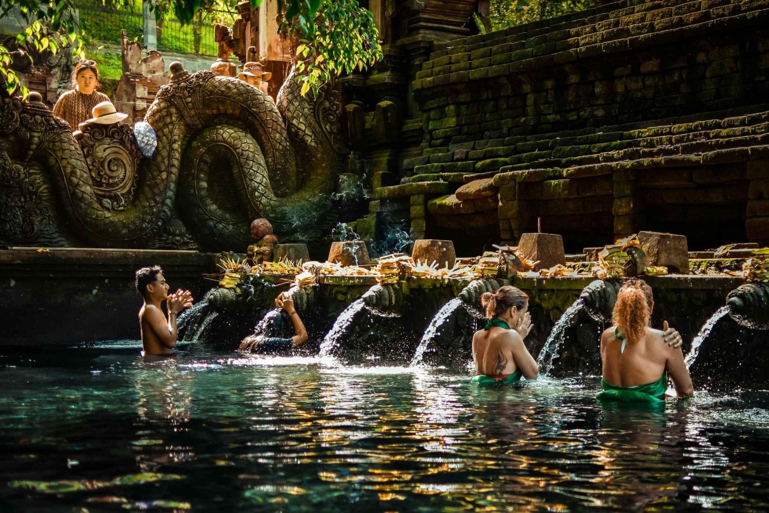 Dagsutflykt till Ubud, som börjar med ett besök på Sacred Monkey Forest Sanctuary, där du kan se lekfulla makaker i deras naturliga miljö. Fortsätt till Tegalalang Rice Terraces, där du kan njuta av hisnande vyer och eventuellt prova djungelgungan eller zip-line för en extra spänning. Besök ett heligt vattentempel, välj mellan Tirta Empul eller Gunung Kawi Sebatu, och njut sedan av en utsökt lokal lunch. Utforska en kaffeplantage för att prova balinesiskt kaffe och avsluta dagen med ett besök vid det fridfulla Ulu Petanu-vattenfallet.Includes